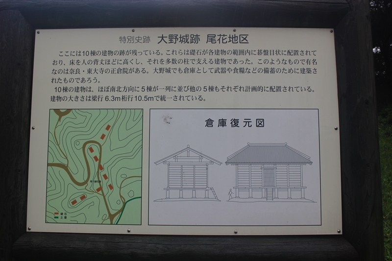 『日本書紀』には、「・・・大野(おおの)と椽(き)、二城(ふたつのき)を築かしむ」と、記載する。また、『続日本紀』に、「大宰府をして大野、基肄(きい)、鞠智(くくち)の、三城を繕治せしむ」と、記載された城である。
