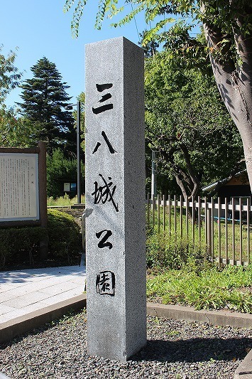 城郭は本丸と二の丸から構成される。現在は跡地に三八城神社、三八城公園がある。
