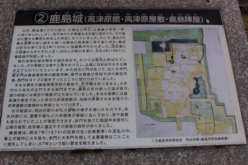 その後1874年(明治7年)の佐賀の乱の際に鹿島城は焼失した。現在、跡地は佐賀県立鹿島高校や旭ヶ岡公園になっている。