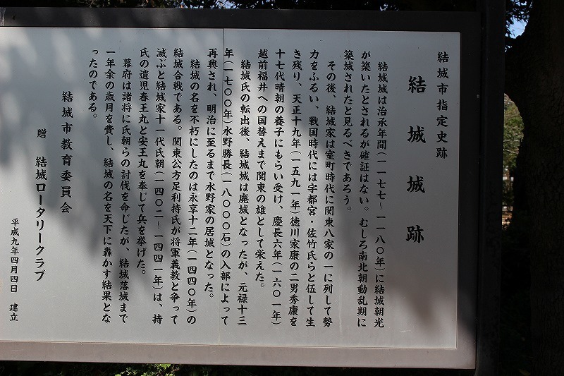 小山下野大掾政光の四男朝光が、志田義広の乱制圧の功により結城郡の地頭職に補任され、当地に城を築いたのが結城城の始まりである。