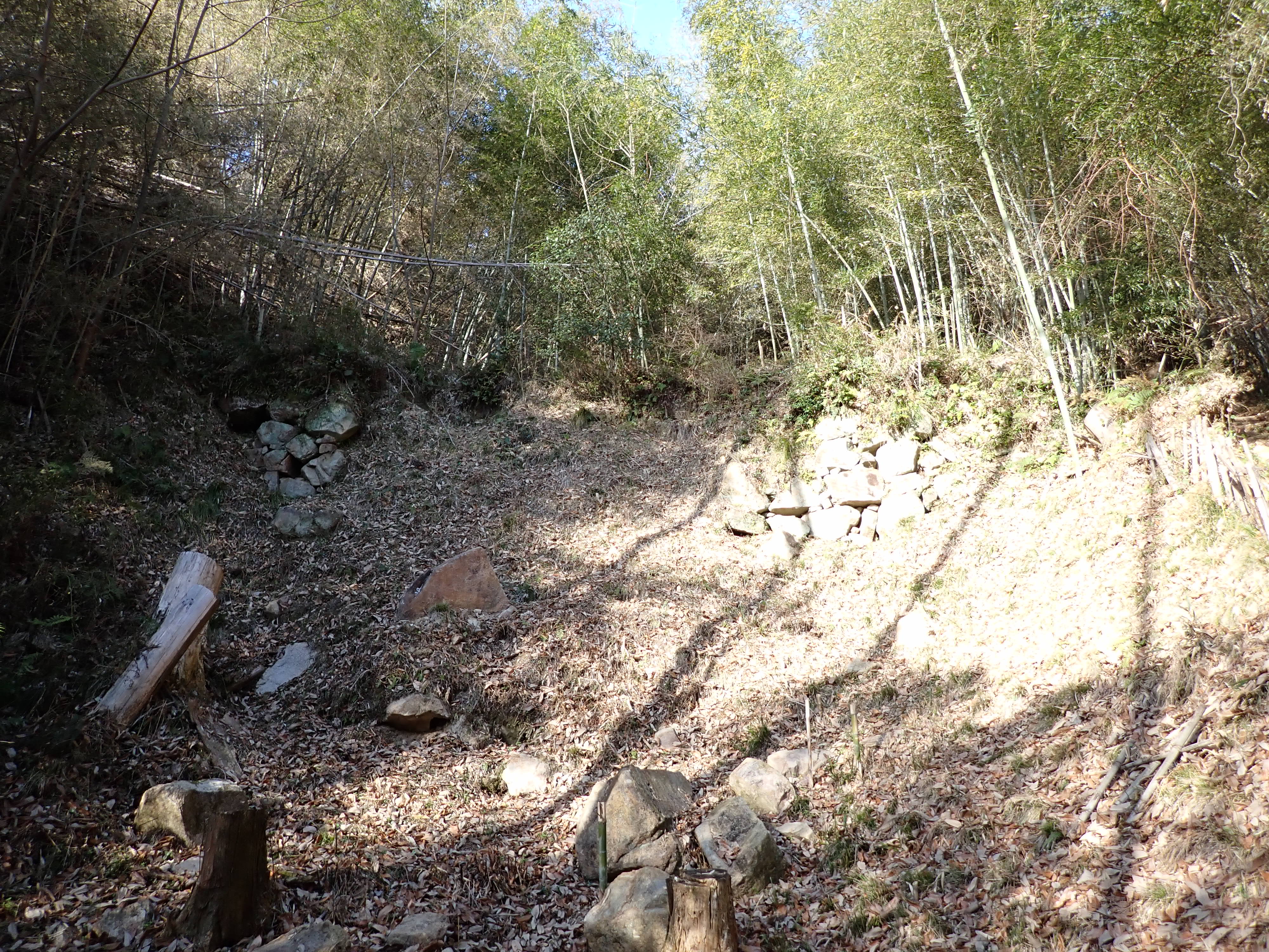 大手の谷筋に築かれた石垣が残る
