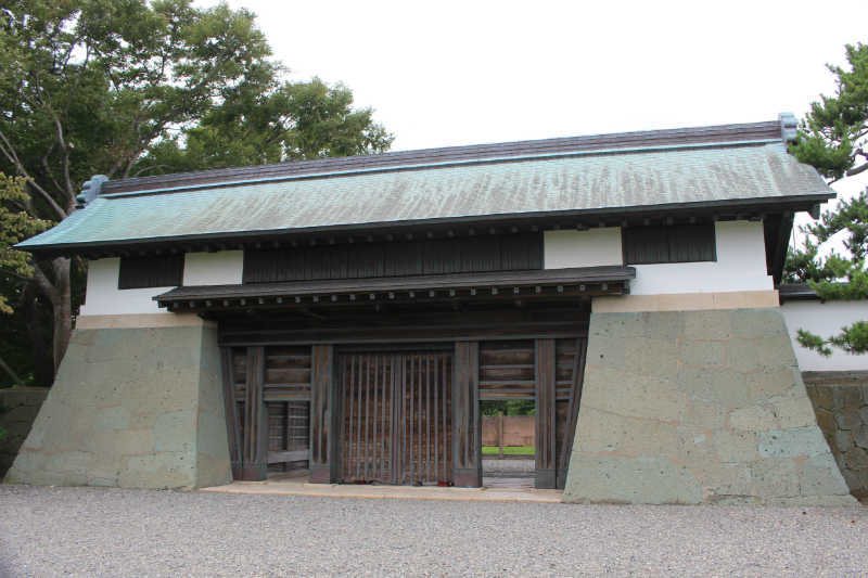 - 本丸御門、御殿玄関、石垣、土塁、堀