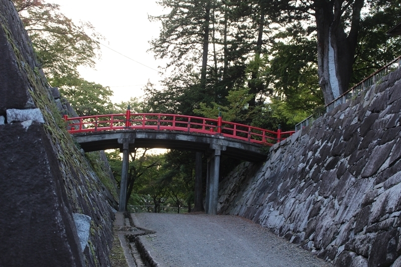 「盛岡城」は南部(盛岡)藩南部氏の居城である。西部を流れる北上川と南東部を流れる中津川の合流地、現在の盛岡市中心部にあった花崗岩丘陵に築城された連郭式平山城である。本丸の北側に二の丸が配され、本丸と二の丸の間は空堀で仕切られ現在は朱塗りの橋が架かっているが、存城当時は廊下橋(屋根付橋の一種)が架けられていた。さらにその北側に三の丸が配され、本丸を囲むように腰曲輪、淡路丸、榊山曲輪が配された。本丸には天守台が築かれたが、幕府への遠慮から天守は築かれず、天守台に御三階櫓が建造され代用とされた。後、1842年(天保13年)に12代利済により天守へと改称されている。