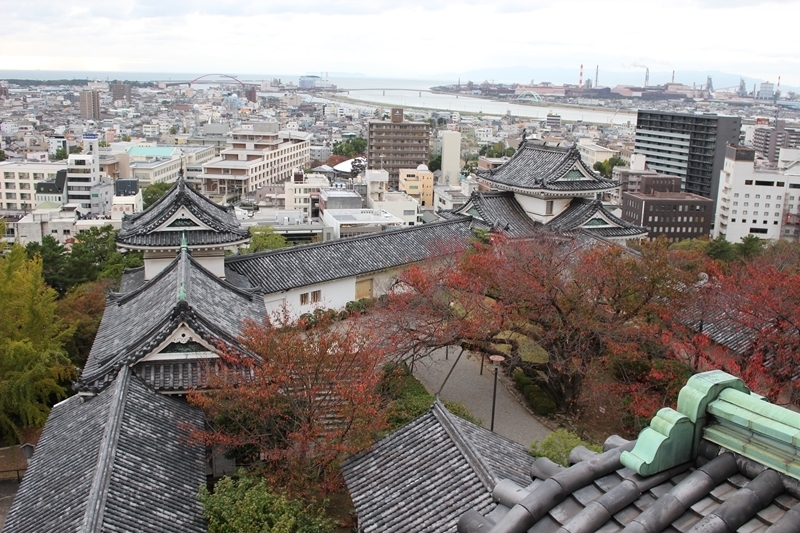 徳川頼宣は1621年(元和7年)より城の大改修と城下町の拡張を始め、計画では完成時より更に大規模な城構えになる予定であったが、大規模な改修であったため幕府より謀反の嫌疑をかけられるほどであった。しかし、附家老安藤直次の弁明で事なきを得た。また、外堀も拡張して総構えにしようとしたが、幕府より嫌疑をかけられ中止させられてしまったため、堀止の地名が残っている。後、数度の火災に遭ったが、その度に再建された。現在、城跡として現存しているのは最盛期の4分の1ほどの面積である(城の北側から見た図)。