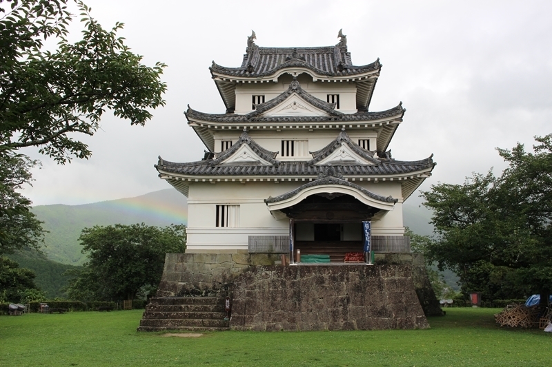 宇和島城は、中世期にあった丸串城(板島城)の跡に藤堂高虎によって築かれた近世城郭である。標高74メートル(80メートルとも)の丘陵とその一帯に山頂の本丸を中心に囲むように二ノ丸、その北に藤兵衛丸、西側に代右衛門丸、藤兵衛丸の北に長門丸(二ノ丸とも)を中腹に配置し、麓の北東に三ノ丸、内堀で隔てて侍屋敷が置かれた外郭を廻らせる梯郭式の平山城で、東側に海水を引き込んだ水堀、西側半分が海に接しているので「海城(水城)」でもある。