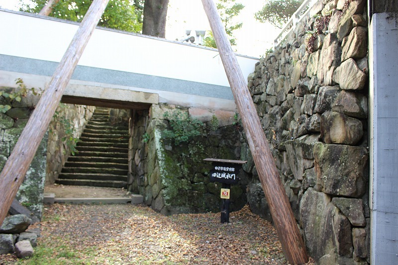 現在の田辺市街の西南端に位置し、会津川の河口左岸と海に隣接していた。遺構として石垣と水門が残る。